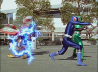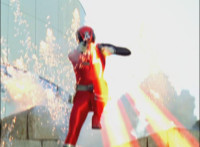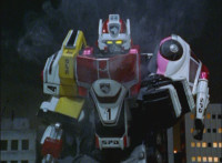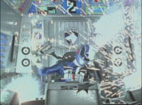 SWAT Megazord roundhouse kicks the electricity blasts out of the air. |