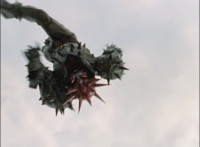 Cuts follow-ups of Broodwing talking and SWAT Megazord lying amid debris; also cuts a sequence later of Omegamax Megazord crashing into Delta Command, then SWAT firing one Blaster upward. |