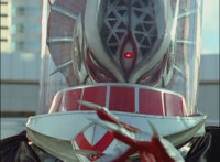 Broodwing talks up close. SWAT Megazord hovers into position, as Red talks in his cockpit. Broodwing replies, then talks to A-Squad Megazord, which replies with a raise of its arm, before marching forth. |