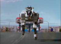 Delta Command Megazord is plodding along when its kneecaps fire laser blasts forth. |