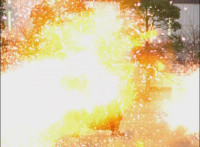 Broodwing crackles, bursts, and explodes. Close-up on Red reacting. |
