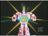 MegaDragonzord spreads arms, the side danglers send glowing Z's to the chest, forming a big green energy circle with Z on it. Zoom out as lights flash out, glowing occurs, and finally bluish-white power erupts around Z-ball as it's launched forth into the screen. |