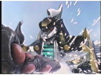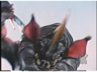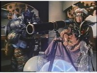Zoom out as Rhinoblaster sparkily slashes Dragonzord with sword, then tries it again, but this time, Dragon grabs his arm, holding it at bay. Rhino leads him around, then they break off, allowing the monster to sparkily slash as he passes Dragonzord, then ducking under his tail, before thrusting at him, but the Zord dodges. Rhinoblaster turns, raises sword and slashes at him once more. |