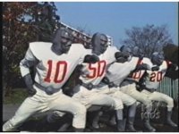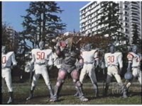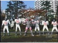 Zoom out as the Football Putties gesture arms to chest, then charge forth in formation, once more. |