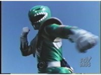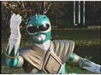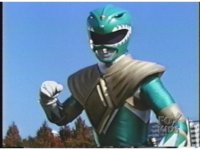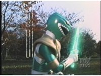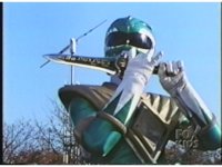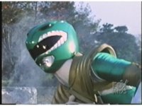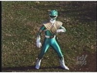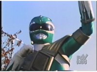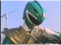 Green Ranger, looking to our upper right, plays Dragon Dagger like a flute. |