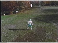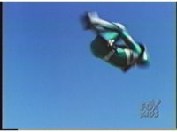 As the fireball erupts in the distance, Green Ranger is flung up, flipping over onto his back. |