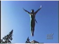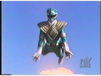 Green Ranger plummets from the sky, falling back-first from the bottom of the screen to the top. |