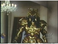 Close on Dragonzord's chestplate getting kicked back by Green & Black Mutants' feet. |