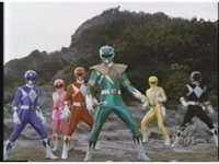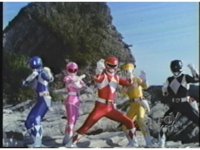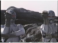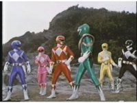 The Rangers take a step back after seeing what's to our upper left, then turn, all except Green, raising hands to upper right and summoning. |
