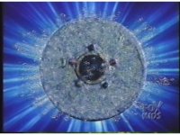 Close-up of a Badge of Darkness, each of the five Ranger colored lights blinking, followed by a burst of white energy from the center orb, as the back background soon brightly shimmers blue. |
