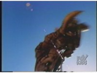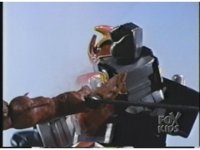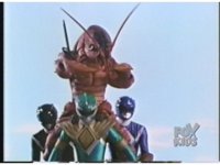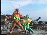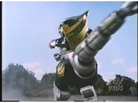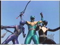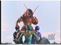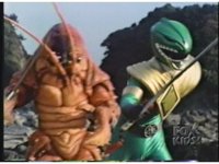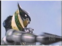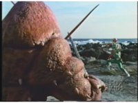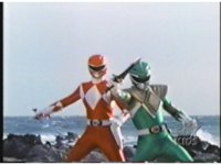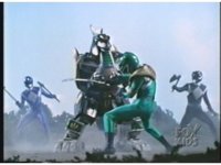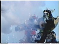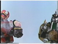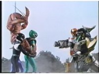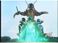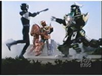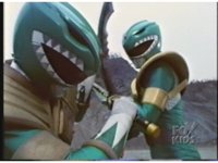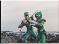 As Black Mutant backs up, Green Mutant slashes Dragonzord sparkily, then tries to repeat the strike, but gets his sword arm grabbed, allowing the Zord to fling him away. |
