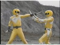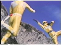 Yellow & Pink Rangers soar skyward together. |