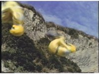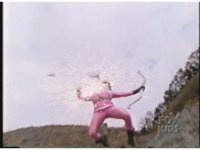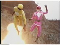 Launched into the air by the explosion behind them, the Yellow & Pink Mutant Rangers flail about as they make their final appearance, never to be seen again. |
