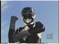 Close on Black Mutant Ranger, posing. |