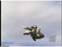 Side angle on Green Ranger leaping up and flipping over to our left as shot zooms in. |