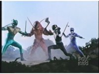 Zoom out as Commander Crayfish and the three Mutant Rangers spread out and pose with weapons, the monster makes a gesture and they all charge forth. |