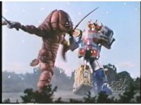 Megazord & Dragonzord are marching forth, when they run right into the Mutant chariot, knocking them both back. They press forth once again, both shoving the Mutant trio back a few steps, before the Mutants regain the ground and shove the Zords back even farther. |