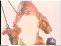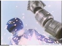 Close on Blue Mutant getting sparkily smacked by Dragonzord's tail. |