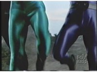 Close on Black & Green Mutants' legs as they kick their right legs forth. |