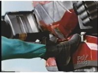Zoom in on cockpit as Red Ranger raises fist up, then forth, then grips control. |