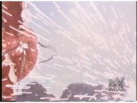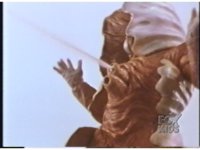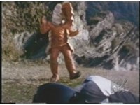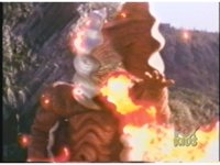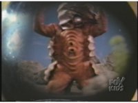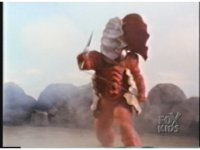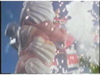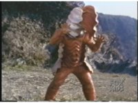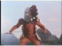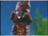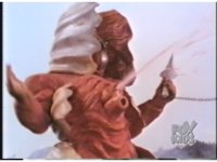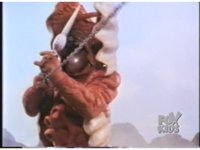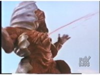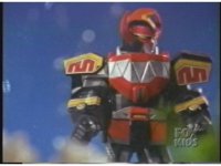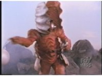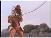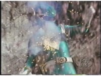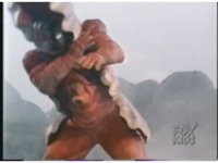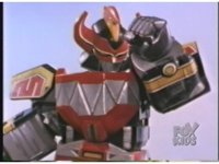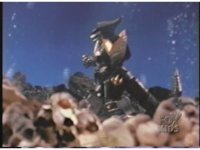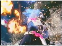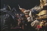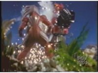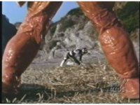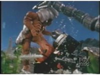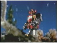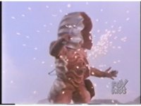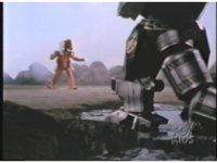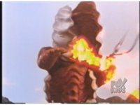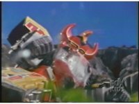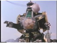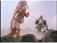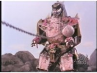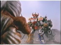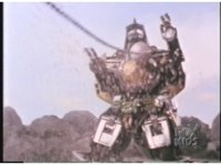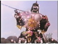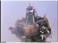 Pan up close on Dragonzord as he stumbles back, then regains his bearings, a big plastic film visible on his chestplate. |