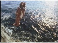 Extreme close-up on crystal ball, in front of flames, as Oysterizer un-bows from his kneeling position and waves arms about under the sea. |