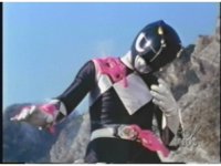 Close on Black Ranger as he lowers his forehead-pointing hands, and nod-talks to our slight upper leftish. |