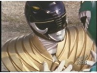 Zoom out as Green takes Black's hand, pulls it from his chest. Green's golden shield gleams with a green energy, as an outline of it appears over Black's chest. A bright white flash later, and Black Ranger is wearing the golden shield, armbands included, which he inspects. |