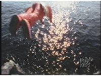 Oysterizer magically de-unsettles the waters of the ocean as he leaps directly up from them. |