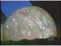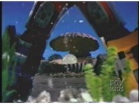 Extreme close-up on crystal ball, held in Rita's hand, as Oysterizer waves arms and bows forth again, under the sea. |