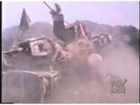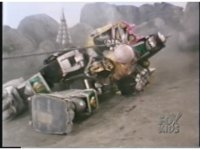 Megazord falls onto the ground on its chest, then rolls to its left side as shot zooms in. |