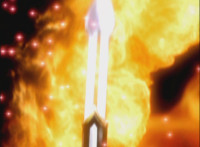Red's Magi Staff transforms amid glames into saber mode. |