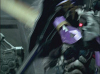 Pan up on Centaurus Wolf Megazord talking forth. |