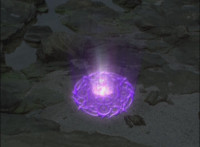 A purple orb flies away from us through the Underworld. |