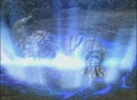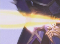 Koragg's shield opens up and shimmers forth a beam of energy. |