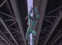 Recycled, per source; cuts follow-ups of him landing behind bridge, then summoning Catastros from a seal. |