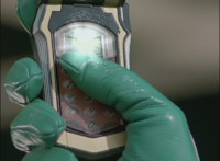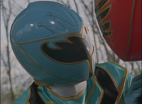 The Rangers look up to our left, Blue speaking, then Green having his say, before pressing some buttons on his Mystic Morpher, and each Ranger spins around, Red the last, leading the team in summoning skyward, and pressing a button on their Morphers. |
