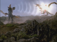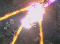 Cuts follow-ups of Centaur being engulfed in flames, Mystic Dragon landing, and Centaur exploding massively. |