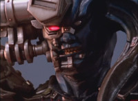 Cuts follow-ups of Koragg opening his shield and blasting Moritcon back, angering him, until Octomus' eye appears to cut short their sparring session. |