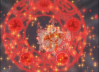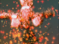 Flames in shots 2 & 4 are given an overlay of sparkles and recoloring; cuts a shot of Red's firey leg between shots 2 & 3; US replaces follow-up explosions around Koragg with one less engulfing. |