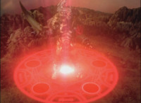 Centaurus Wolf Megazord summons energy from its chest and fires it to the ground, creating a seal, from which Morticon climbs up. Mystic Phoenix reacts, as Morticon rises into the forest giant-sized. |