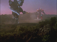 Centaurus Wolf Megazord walks into the setting sun and vanishes from sight. |