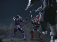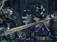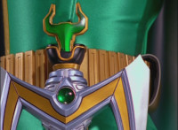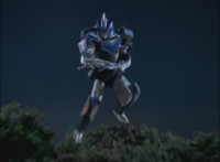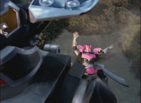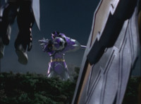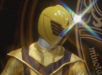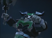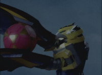 Centaurus Wolf Megazord responds in a close shot. The five Mystic Titans get into position to start coming together, when the sun peeks over the horizon, shining brightly in Mystic Sprite's face, causing her to suddenly lose composure and collapse. Mystic Minotaur turns around and notices her falling to the ground. Centaurus Wolf Megazord also takes notice, as Mystic Sprite rolls over, and powers down. |