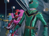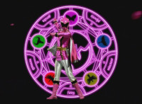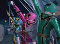 Flytrap towers above the Rangers, as they face him. Yellow nod-talks, Pink responds and readies her Mystic Morpher, pressing buttons on the glowing keypad, leading the team in summoning to the night sky. |