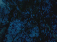 Close on Koragg speaking and stepping forth in the woods at night. |