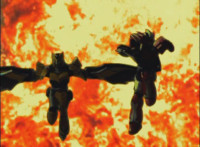 A massive explosion erupts before the Mystic Titans, only for Mystic Garuda & Mystic Phoenix to leap through the flames. |