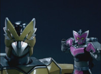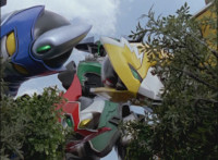 Centaurus Wolf Megazord faces Mystic Phoenix & Mystic Garuda, both of whom speak, followed by the other Mystic Titans also getting quick dialogue. |