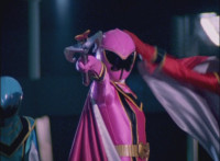 Red struggles and speaks, Pink responds, then transforms into a fly, slipping out of her vine binds and fluttering over, reverting to normal and slashing the vines of her teammates with her Magi Staff, causing Flytrap to stagger aside with broken vines. |