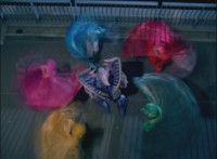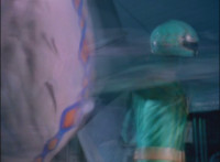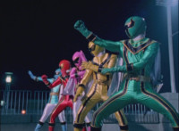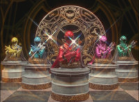 Zoom out from the Flytrap monster as the five Rangers twirl their capes around. |