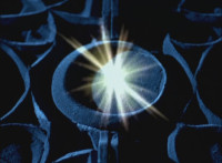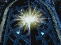 Close-up of Koragg's shield as its gem gleams, then closes. |